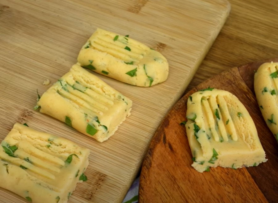 Nakon što ste dobili jednoličnu smesu, dodajte kukuruzni skrob i formirajte testo. Ova komponenta je važna jer pomaže da se testo zadrži i da se lakše oblikuje. Podelite ga na pet jednakih delova. Od svakog dela napravite duguljaste oblike, prutiće, a zatim ih po sredini utapkajte viljuškom kako biste ostavili tragove. Ova tehnika ne samo da dodaje vizuelnu privlačnost, već pomaže i da testo bolje upije ulje prilikom prženja. S obzirom na to da se radi o prženju, dobro oblikovanje može uticati na krajnji rezultat – hrskavost i sočnost.