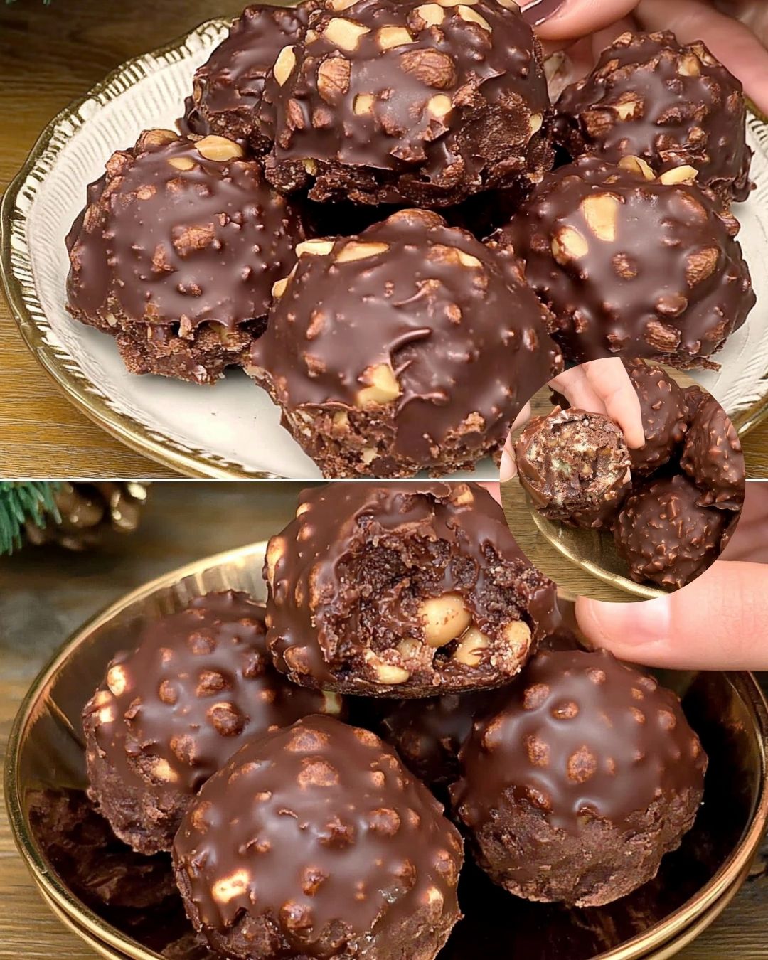 Izvadite tartufe iz zamrzivača i s dvije vilice umočite svaki u otopljenu čokoladnu smjesu, osiguravajući ravnomjeran premaz. Prije nego se čokolada stegne, dodajte posip nasjeckanog kikirikija na svaki tartuf za ukras.