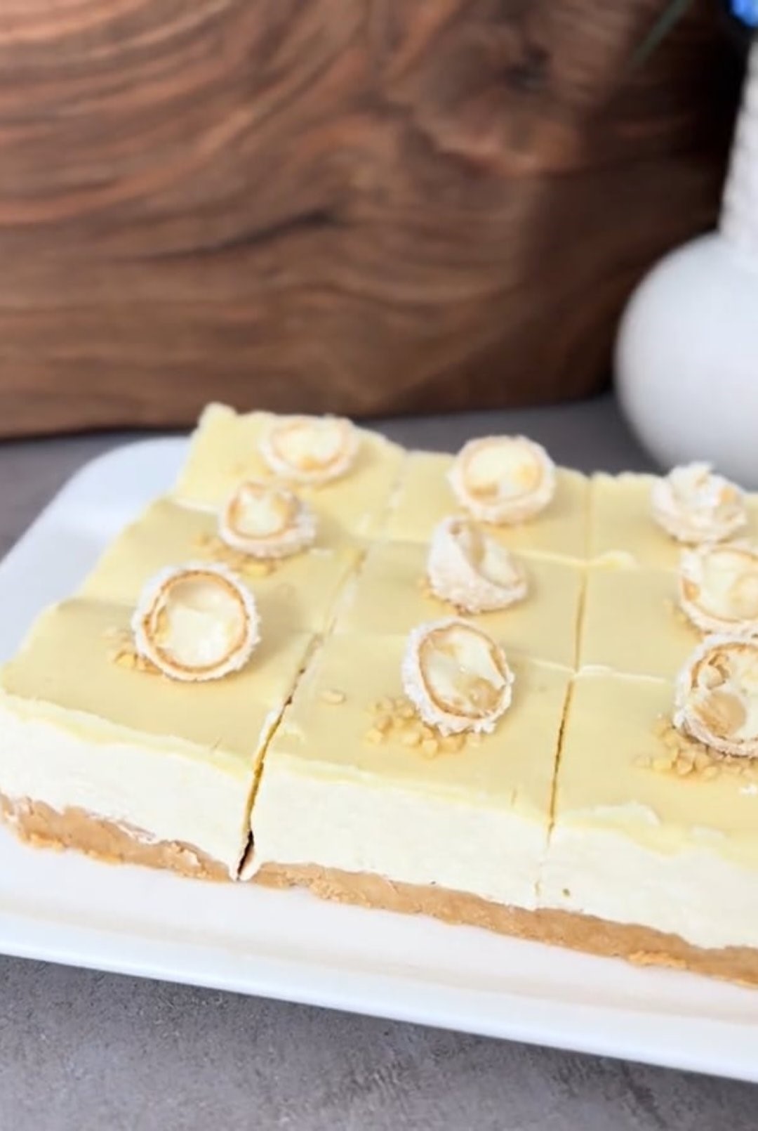 Otopljeni maslac i mlijeko pomiješajte s izdrobljenim keksima, dobro izmiješajte prije nego što smjesu utisnete u kalup. U posebnoj zdjeli umutiti mascarpone sa šećerom u prahu, zatim dodati hladno vrhnje namijenjeno za šlag i sve izmiksati. Zatim dodajte i kokos i kokosovo vrhnje, ravnomjerno rasporedite smjesu. Po vrhu pokapajte otopljeno vrhnje od kokosa pa stavite u mikrovalnu na nekoliko sekundi. Na kraju ostavite u hladnjaku 2 do 3 sata.