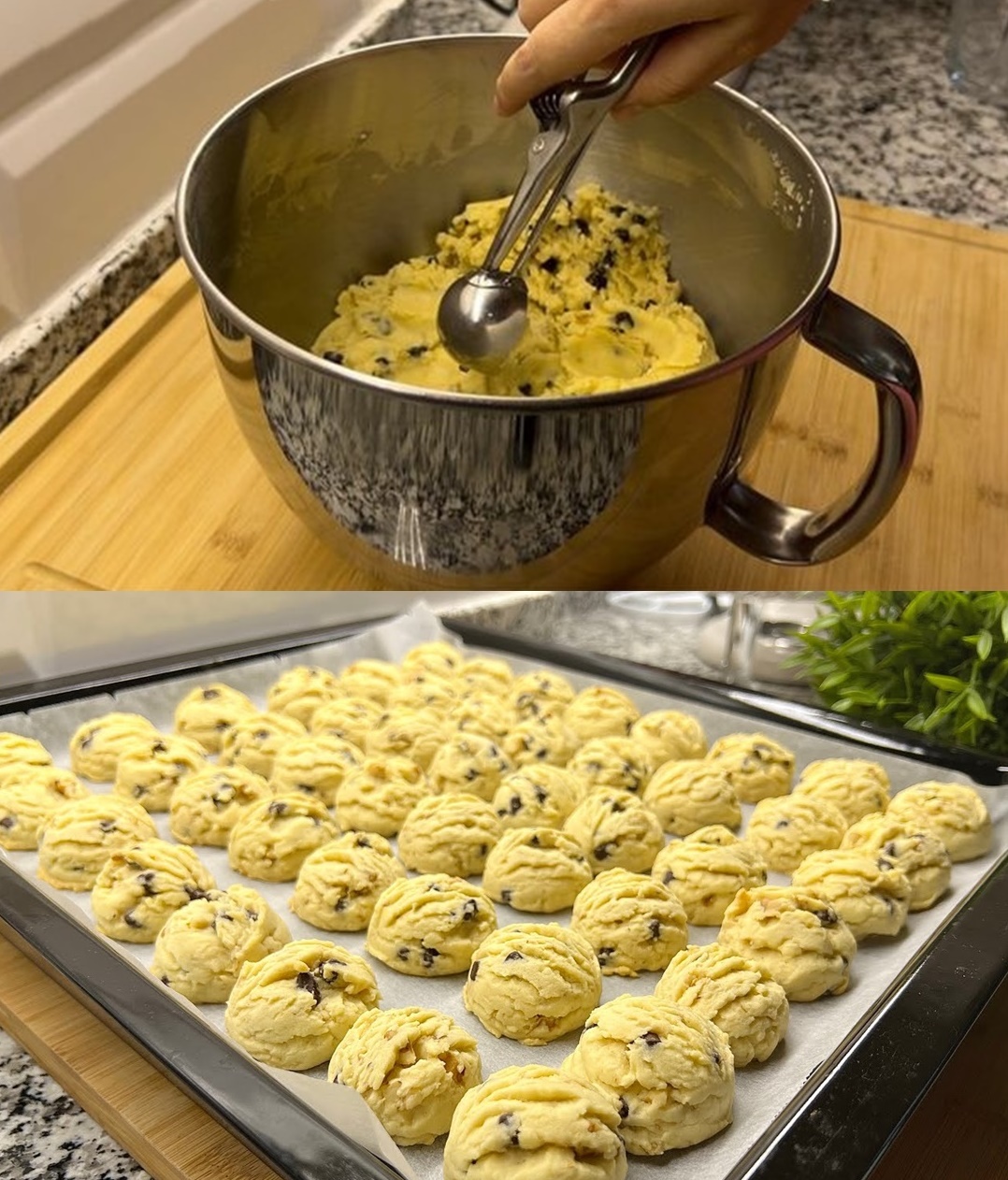Za savršenu seriju kolačića s komadićima čokolade trebat će vam sljedeći sastojci: 250 grama omekšalog maslaca, 1 šalica ulja, 1 jaje, 1 šalica pšeničnog ili kukuruznog škroba, 1 šalica šećera u prahu, 4 šalice brašna, 1 žličica praška za pecivo, 1 pakiranje vanilije, 1 velika šalica krupno nasjeckanih oraha i 1 velika šalica komadića čokolade.
