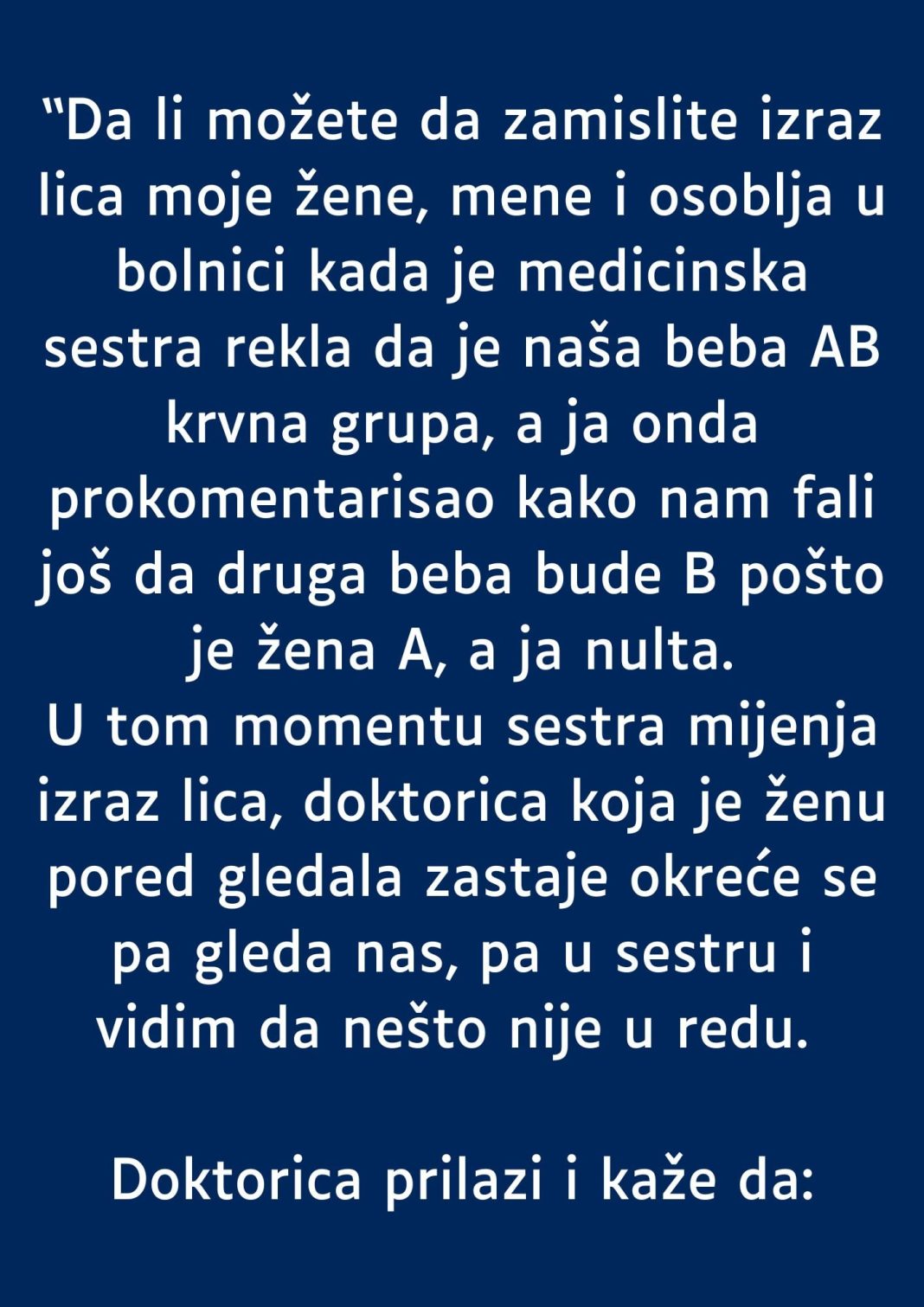 Doktorica prilazi i obavještava nas da je potrebno ponovno procijeniti stanje bebe, a onda meni i supruzi savjetuju da ćemo morati izvaditi krv.
