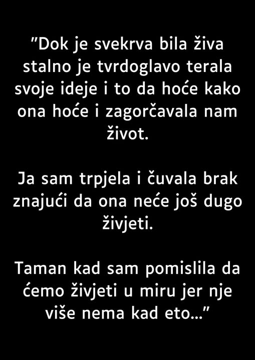Prošlo je nekoliko godina od smrti naše kćeri. Tražim razvod u potrazi za vlastitim mirom. Iako nemam osobnog animoziteta prema toj osobi, smatram da je nepotrebno snositi obvezu uzdržavanja dok ne završi fakultet, niti se želim baviti kuhanjem, pranjem ili peglanjem dok ne stupi u brak. Pojam nasljednika jednako je iracionalan, jer će nam vjerojatno trebati starački dom u sljedećih 15 godina.