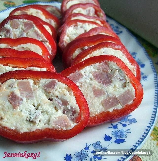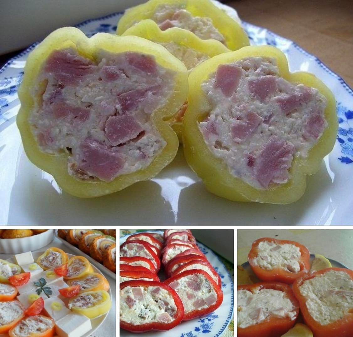 Paprici izvadite sjemenke i nadjenite je smjesom. Narežite pršut ili šunku ili bilo koji sastojak po želji na sitne kockice. Osobno preferiram tanke i male štapiće.
