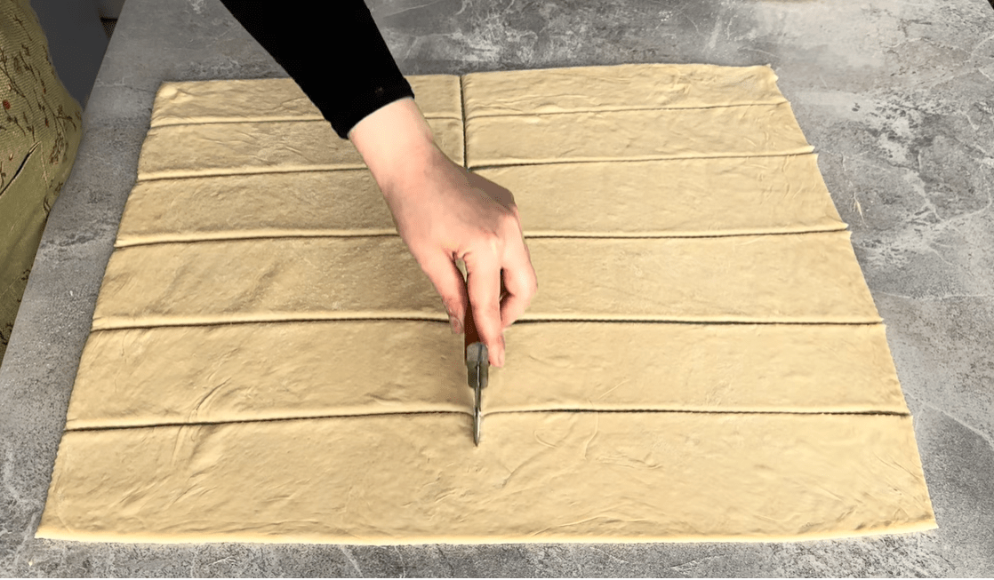 Svaki krug se premaže otopljenim maslacem i zatim složi u formaciju koja rezultira slojevitom strukturom. Nakon što su svi slojevi sastavljeni, tijesto se još jednom pažljivo razvalja i oblikuje u željene oblike, a najčešće se biraju trokuti, pravokutnici ili krugovi.