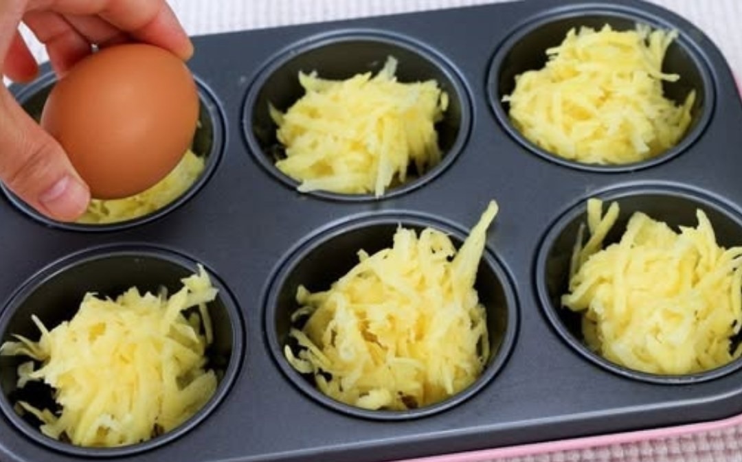 Smjesu krumpira ravnomjerno rasporedite po pripremljenim kalupima za muffine, lagano pritiskajući da se smjesa zbije. Nastavite dalje peći muffine: