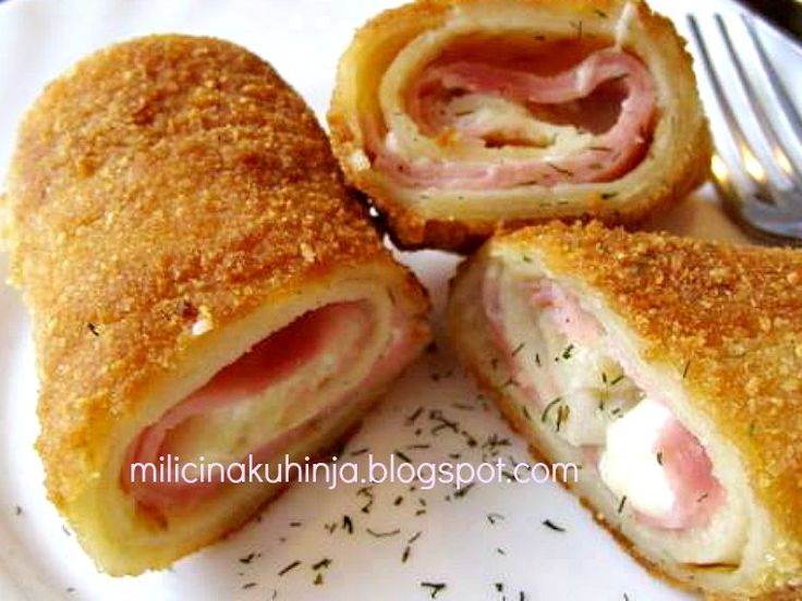 Oklagijom poravnajte sendvič tost. Na svaki komad tosta stavite krišku sira i šunke pa ih lagano zarolajte. Šunku možete zamijeniti salamom ili američkom slaninom ili čak kombinirati šunku i slaninu, ovisno o želji.