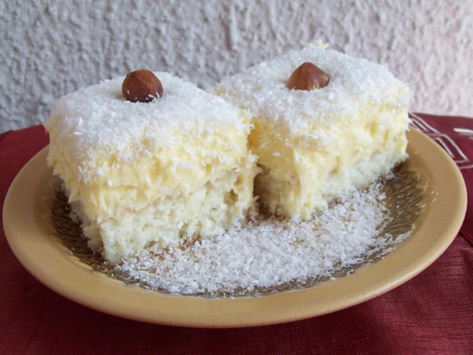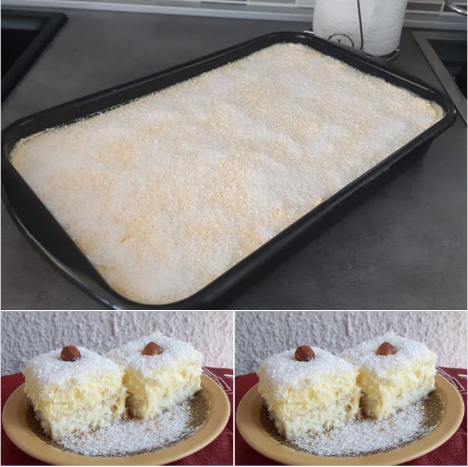 Dok se kora peče, pripremite puding sa mlijekom i dodajte šećer po želji radi slatkoće. Nakon što izvadite koru iz pećnice, prelijte je ohlađenim dresingom i ostavite par minuta da se upije. Nakon toga vruć puding preliti preko kore. Kada se kolač ohladi umutiti kremu.