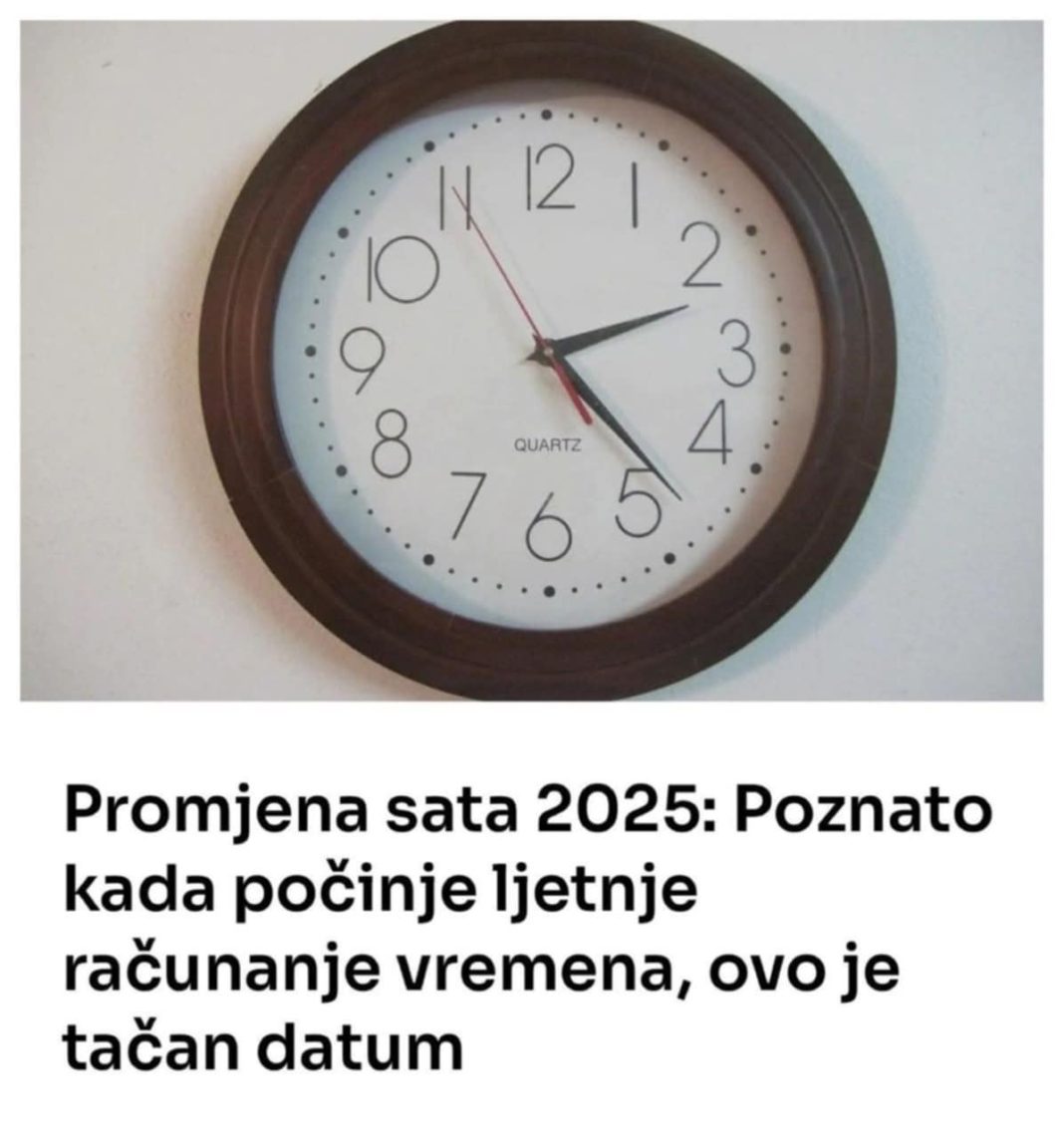 U 2025. godini, prema ustaljenoj tradiciji, sat ćemo pomaknuti dva sata unaprijed.