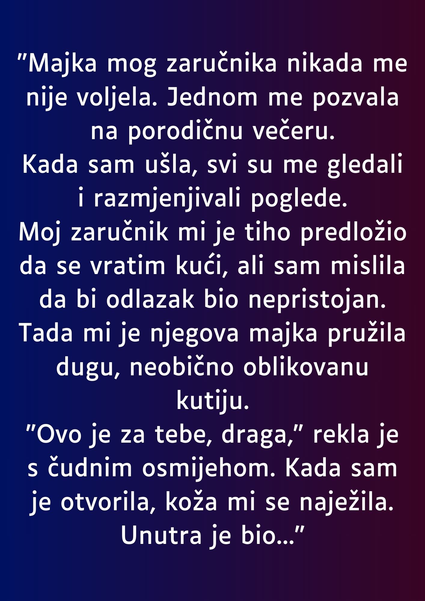 “Draga, ovo je za tebe”, primijetila je, s neobičnim osmijehom. Nakon što sam ga otvorio, kroz kožu su mi prošli trnci.