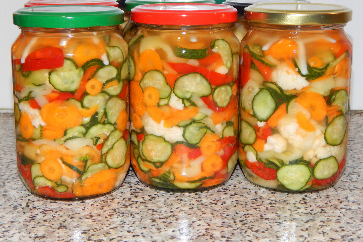 Nakon što prođe cijeli dan, salatu prebacite u temeljito očišćene boce, poput staklenki ili boca na pari. Pripazite na pritisak i osigurajte da u bocama ne ostane tekućina. Kako bih povećao kompaktnost salate, boce sam stavio naopako na trbuh i lagano pritisnuo. Na kraju staklenke dobro zatvorite. Prije posluživanja salatu lagano promiješajte. Ona je apsolutno fantastična! Iako nije obavezno, ovom se tekućinom može pokapati salata kako bi zadržala svoju divnu teksturu – laganu, hrskavu i iznimno ugodnu.