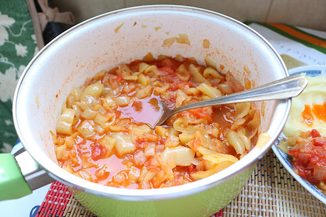 Obično ga moja majka priprema od svježe ubranih rajčica. Nožem probuši kožu, stavi ih u metalnu posudu, prelije vrućom vodom i ostavi da se namaču otprilike 10 minuta dok se koža ne može pažljivo oguliti.