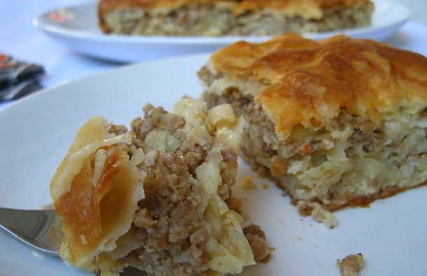 Za četiri osobe 500 grama kore za savijače, jedna srednja glavica crvenog luka i 500 mililitara mesa po želji.