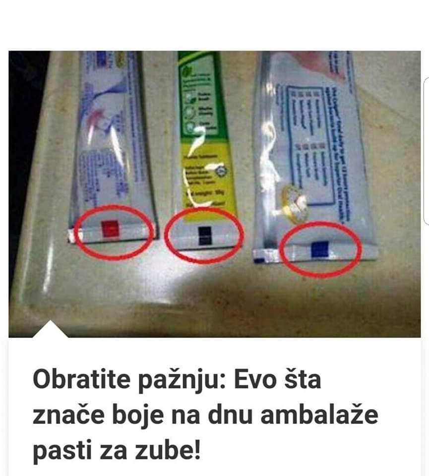 Kvadrat koji se nalazi na dnu tube pruža značajne informacije o sastojcima, zbog čega je bitno identificirati što svaka boja označava.
