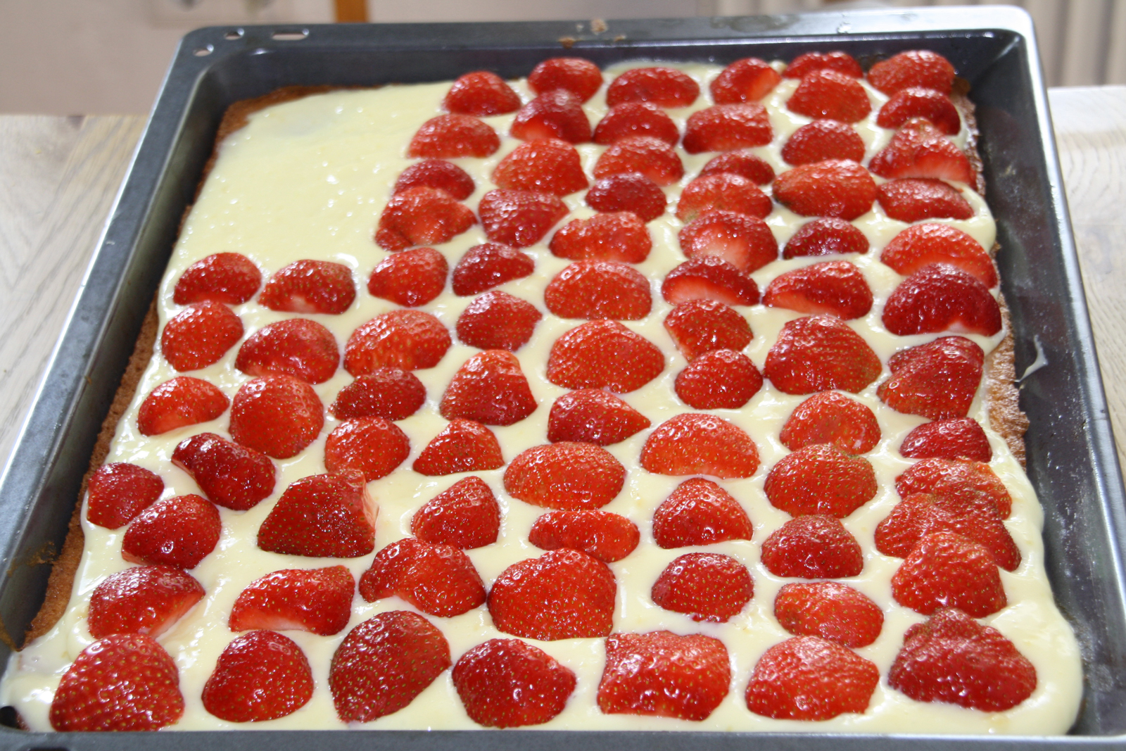 Korak 11: Veće jagode prepolovite ili narežite na četvrtine, dok manje jagode možete ostaviti cijele ili prerezati na pola. Težite jednoličnim komadima kako biste zajamčili ravnomjernu raspodjelu po kolaču.