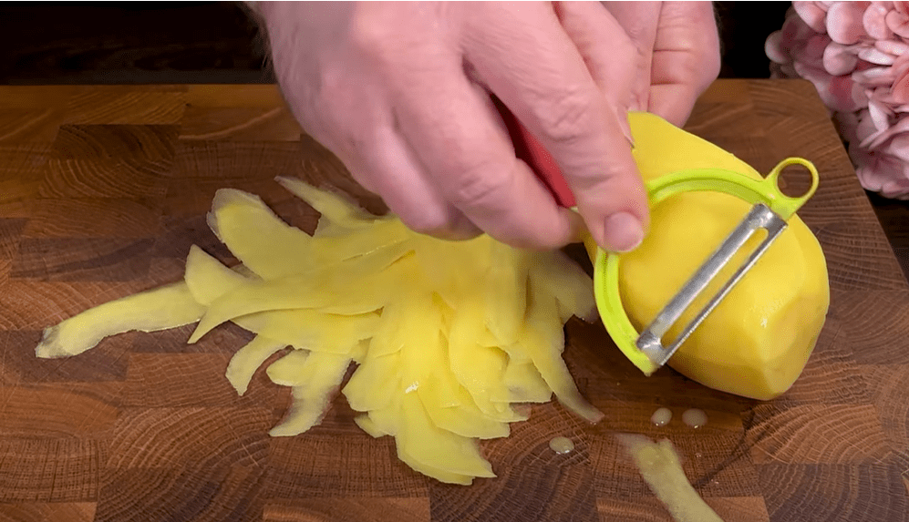 Za pripremu tijesta naribajte krumpir pomoću ribeža. U zdjeli za miješanje pomiješajte jaje, mlijeko, brašno, sol i crni papar, pazeći da se smjesa miješa dok ne postane glatka.