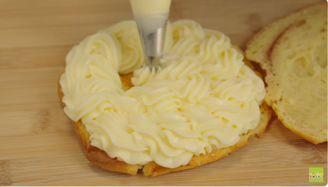 Nakon što je choux tijesto doseglo hladnu temperaturu, nježno ga prerežite na pola, a zatim ga žlicom izdašno nadjenite ukusnom mješavinom kreme od limuna i mascarponea.