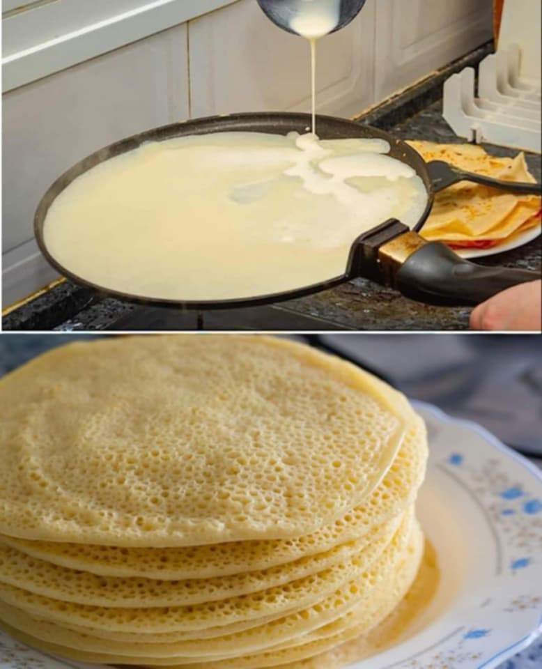 Ulijte jednu punu kutlaču smjese u sredinu prethodno zagrijane tave koja se ne lijepi. Pustite da smjesa zadrži svoj oblik bez da je vrtite po tavi kao što se obično radi kod pripreme tradicionalnih palačinki. Pecite palačinke otprilike dvije minute, ili dok površina ne postane spužvasta i suha. Suzdržite se od okretanja palačinke. Kada je pečena, palačinku stavite na tanjur i nastavite s ovim postupkom dok ne potrošite svu smjesu. Poslužite s malo meda.