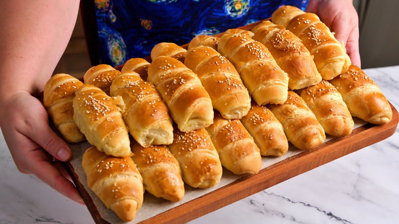 Započnite s valjanjem tijesta na debljinu od otprilike jednog centimetra, zatim nastavite s izrezivanjem trokuta koji će se oblikovati u rolice. Nakon oblikovanja, posložite rolice na lim za pečenje, pazeći da su dovoljno razmaknute, i ostavite ih da se dižu otprilike trideset minuta. U međuvremenu zagrijte pećnicu na temperaturu od otprilike 200 stupnjeva.