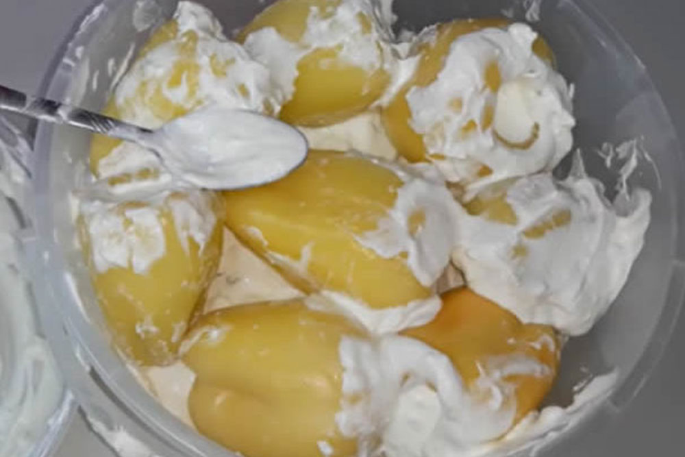 Završite slojem kiselog vrhnja. Ostavite u hladnjaku preko noći da se okusi prožmu, a zatim poslužite. Odlično idu uz kuhani krumpir ili kiflice.