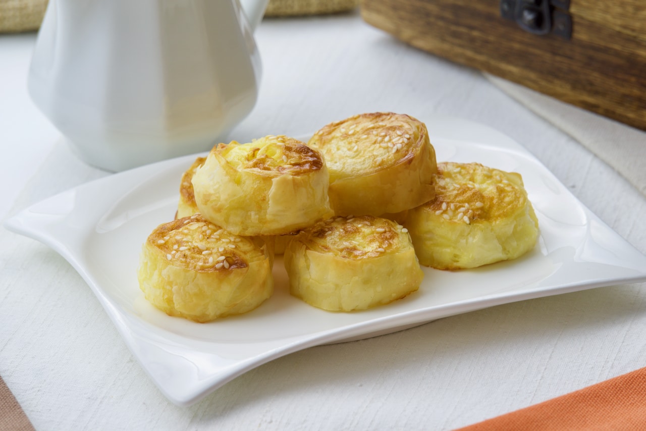 Za optimalno pakiranje preporuča se 9-12 komada gotovih tankih kora u pakiranju. U receptu je potrebno 500 g bijelog kravljeg sira, 180 g jogurta (manja čašica), 4 žlice kiselog vrhnja, 2 jaja, 4 žlice ulja, 1 prašak za pecivo i sol. Po želji se može dodati i povrće. Za premaz pomiješati 1 jaje, 3 žlice kiselog vrhnja i 2 žlice jogurta, te posuti sezamom.