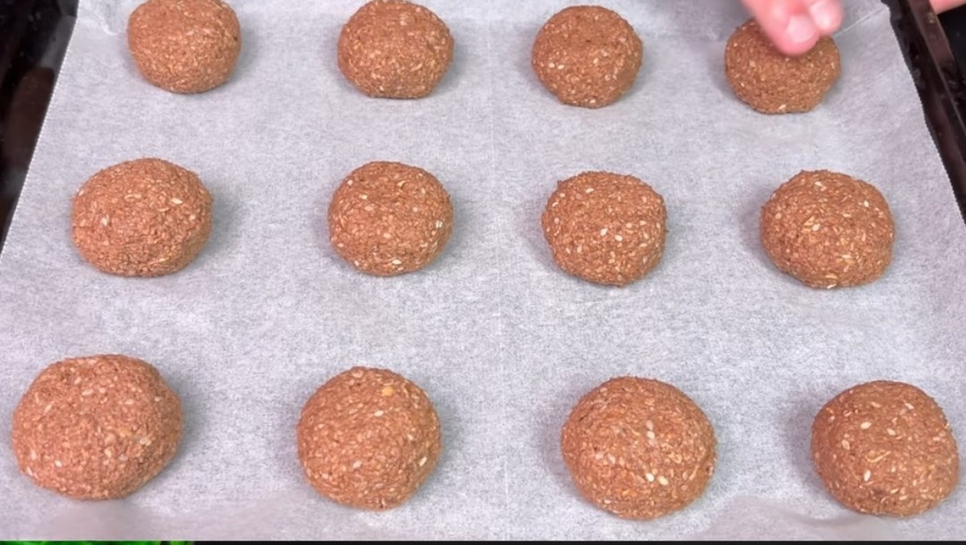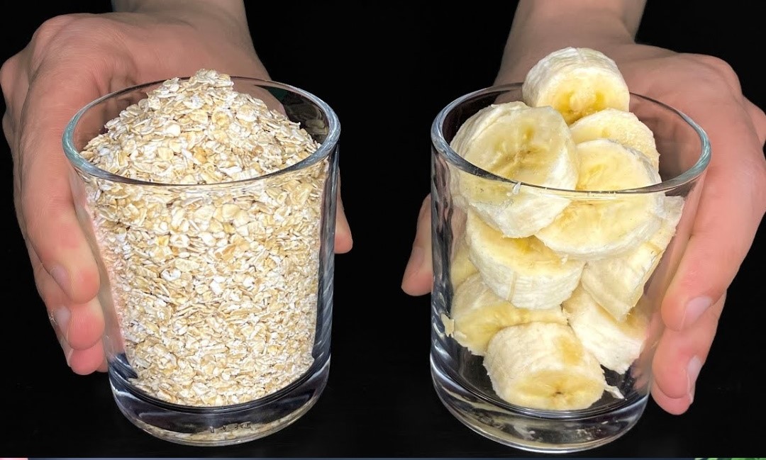 Kako biste napravili ovaj slatki recept, pomiješajte 1 šalicu zobenih pahuljica, 1 žlicu kakaa u prahu, 30 g nasjeckanih oraha, 1 žličicu vanilin šećera, 30 g mljevenih badema, 30 g zobenih pahuljica, 1 zgnječenu bananu i 160 ml od vode.