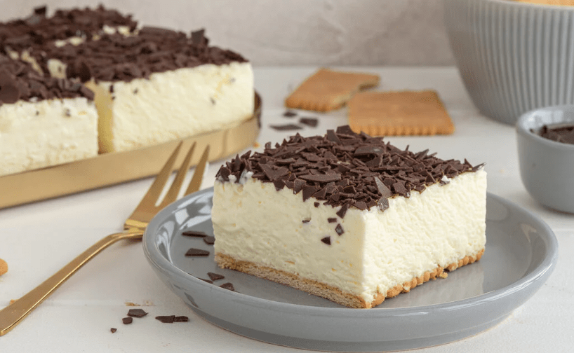 Za ukrašavanje torte pospite je naribanom čokoladom i stavite u hladnjak. U slučaju vremenskih ograničenja, alternativna opcija je staviti tortu u zamrzivač, ali budite oprezni kako biste spriječili da se stvrdne.