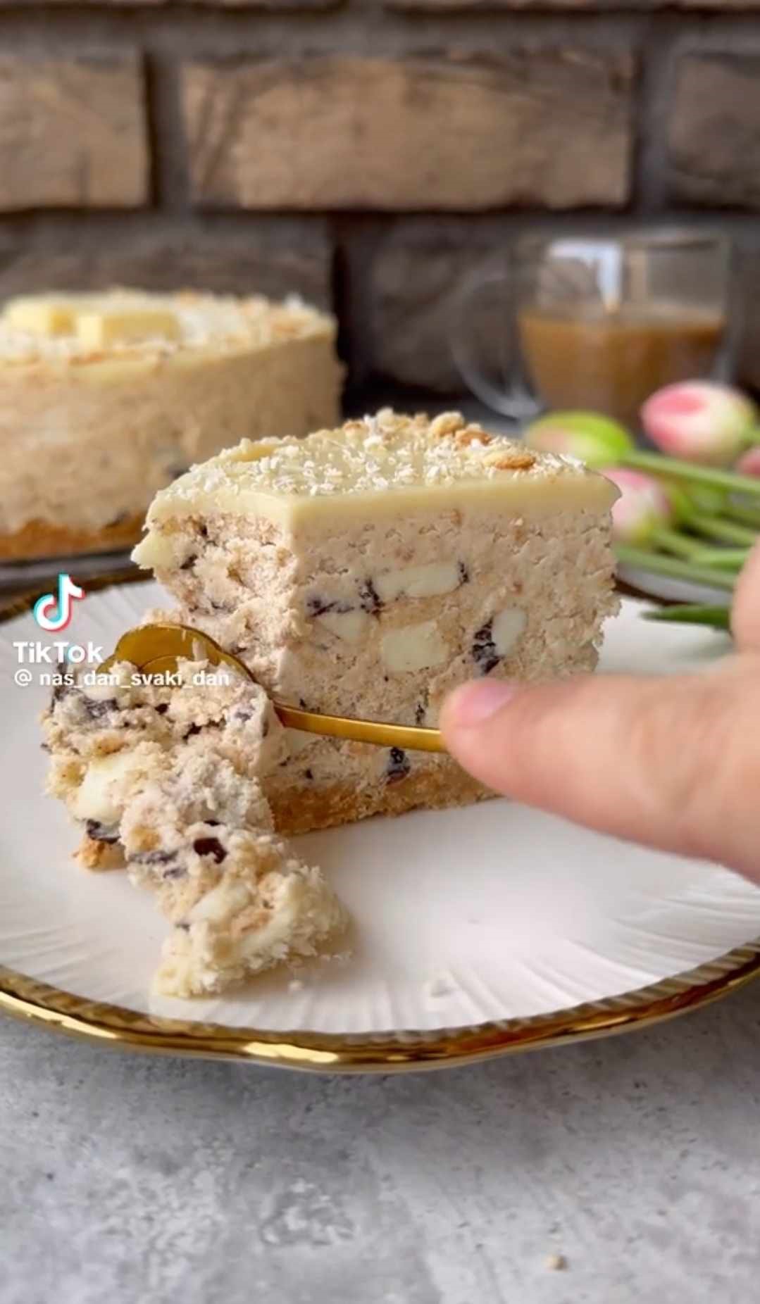 Nadjev je napravljen od kombinacije slatkog vrhnja, bijele čokolade i fino mljevenih lješnjaka.