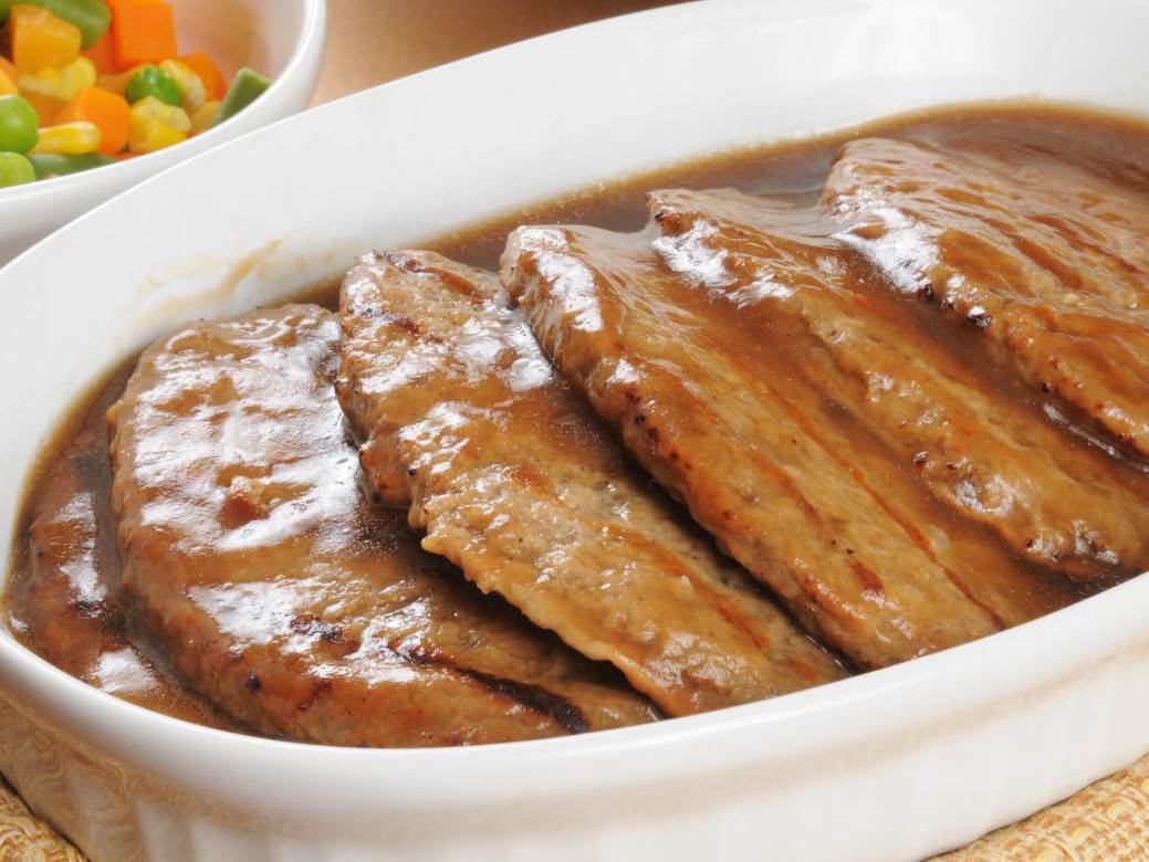 Odreske omekšati, posoliti i posuti brašnom. Zagrijte ulje u tavi, pa popržite šnicele sa svake strane prije nego što ih prebacite na tanjur. Na istom ulju treba napola popržiti nasjeckani luk uz rebra. Zatim umiješajte brašno i sitno nasjeckani češnjak pa dodajte vodu i ostavite da se još kratko prokuha. Zatim dodajte sol ili sušeno začinsko bilje, stavite šnicele natrag u umak i ostavite ih da krčkaju na laganoj vatri dok ne omekšaju.