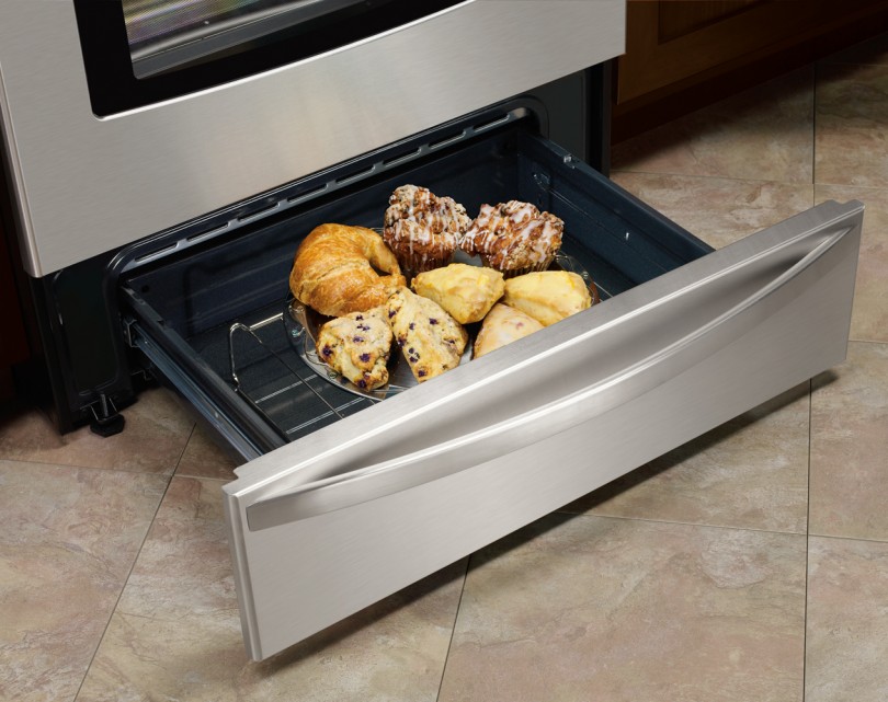 - Ako ne nađete kontrole, sljedeće mjesto za pregled je sama ladica. Određene grijaće ladice imaju regulatore temperature smještene unutra, koji su vidljivi samo kada se ladica otvori. Ako je to slučaj, onda je vaša pećnica opremljena ladicom za zagrijavanje!