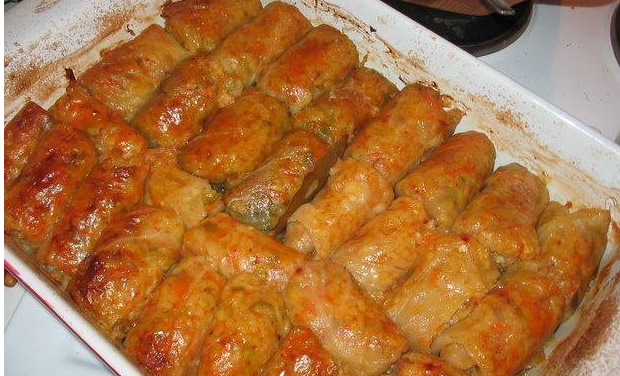 Na ulju u tavi prodinstajte nasjeckani luk i poriluk pa dodajte opranu rižu i pržite na srednje jakoj vatri dok riža ne postane staklasta. Začinite solju, crnim paprom, mljevenom paprikom i feferonom (oni koji vole blaži okus mogu se odlučiti za slatku papriku). Na dno posude predviđene za sarmu malo nauljiti i staviti sitno nasjeckani kupus iz jezgre. Na ovaj sloj rasporedite sarme. Za optimalne rezultate poželjne su manje porcije; pa sam listove rezala na manje komade i svaki punila ravnom žlicom smjese. Posudu lagano zagrijte, poklopite i stavite peći u pećnicu zagrijanu na 180°C oko 3,5 do 4 sata, pazeći da rešetka bude niže od sredine.