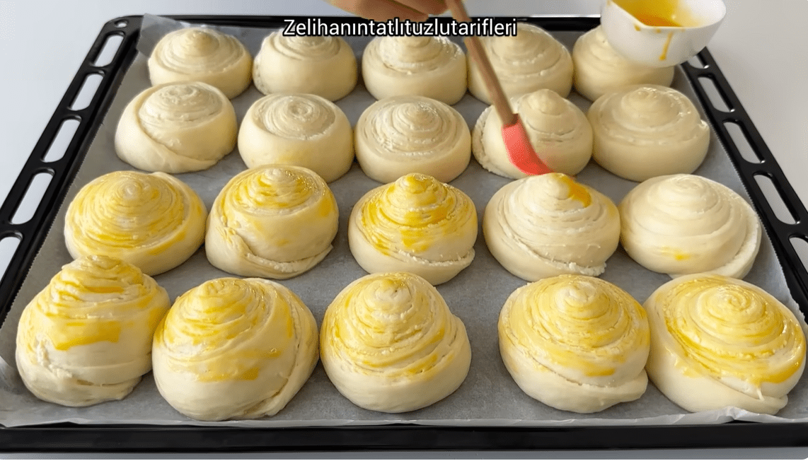 Da bi se to postiglo, sve kuglice se stavljaju u tepsiju obloženu papirom za pečenje, koji olakšava njihovo podizanje. Nakon toga površinu kiflica premazati smjesom umućenih jaja i skromne količine ulja.