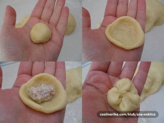 Ovaj put sam kod kuće imao lješnjake jer i mm i ja nismo voljeli čistiti orahe pa sam ih potpuno uništio. Smjesa za nadjev mora biti dosta gusta. Nakon što je tijesto dovoljno naraslo, ponovno ga razvaljajte na lagano pobrašnjenoj površini i premijesite. Od tijesta oblikujte kuglice veličine oraha, svaku odvajajte, au sredinu stavite pola žličice nadjeva.