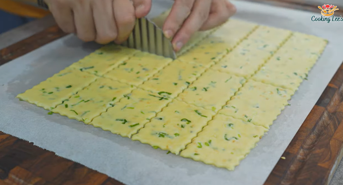 Da biste dobili pravokutni oblik, tijesto poravnajte valjkom za tijesto. Važno je napomenuti da debljina tijesta izravno utječe na teksturu krekera jer tanje tijesto daje hrskavije rezultate.