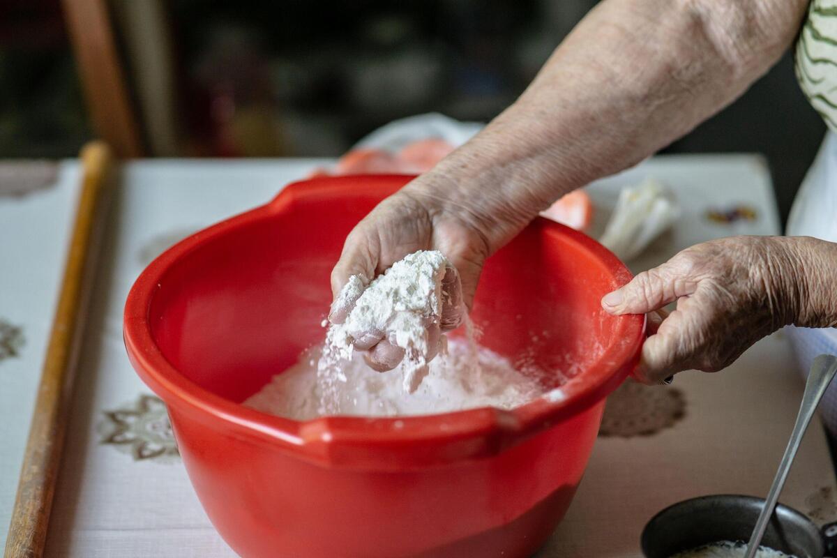 Nakon što se smjesa ohladi, sipajte je u dublju činiju i ručno izradite testo. Prebacite ga na radnu površinu i mesite dok ne postane glatko. Oblikujte testo u rolat, pa ga izrežite na komade veličine oraha. Svaki komad oblikujte u kuglu i rastočite rukama u obliku malih palačinki. Ovaj proces može biti zabavan, posebno za decu koja mogu učestvovati u pripremi.