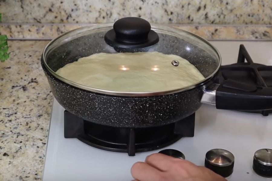 Priprema palačinki započinje kuvanjem vode. Sipajte vodu u lonac i stavite ga na šporet. Pokrijte poklopcem i sačekajte da proključa. Kada voda proključa, dodajte jogurt i dobro izmešajte lopaticom. Ostavite da se kuha približno 4-5 minuta, a zatim skinite lonac s vatre i dodajte brašno. Na kraju, posolite smjesu, promešajte i ostavite da se malo ohladi.