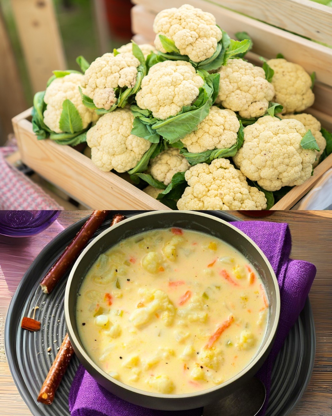 Započnite laganim miješanjem i dodavanjem oko 300 ml vode u posudu za kuhanje. Pustite da kratko prokuha prije nego što stavite cvjetaču koju treba izlomiti na manje komade. Smjesu začinite po ukusu, pa dodajte još 600 ml vode. Kuhajte oko 20 minuta.