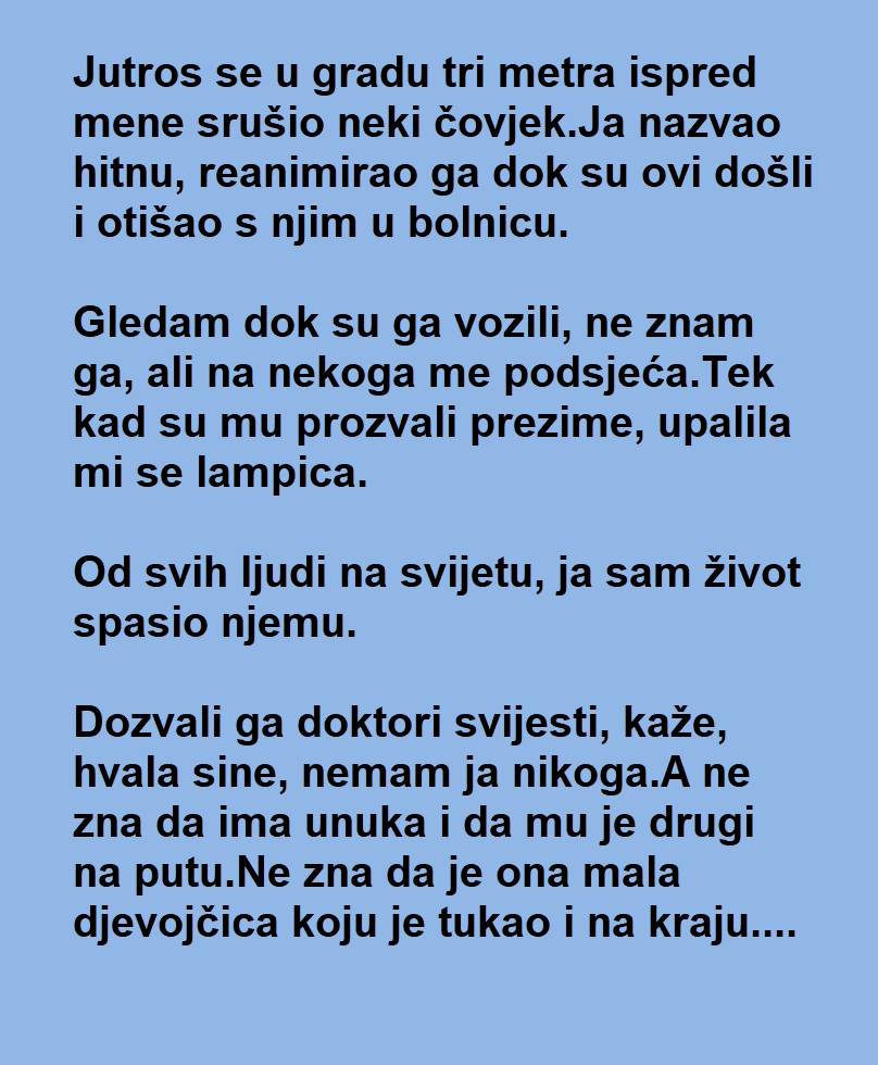 Tek nakon što sam čuo njegovo prezimena sinula mi je ta spoznaja. Među svim pojedincima u svijetu, ja sam intervenirao da mu spasim život.