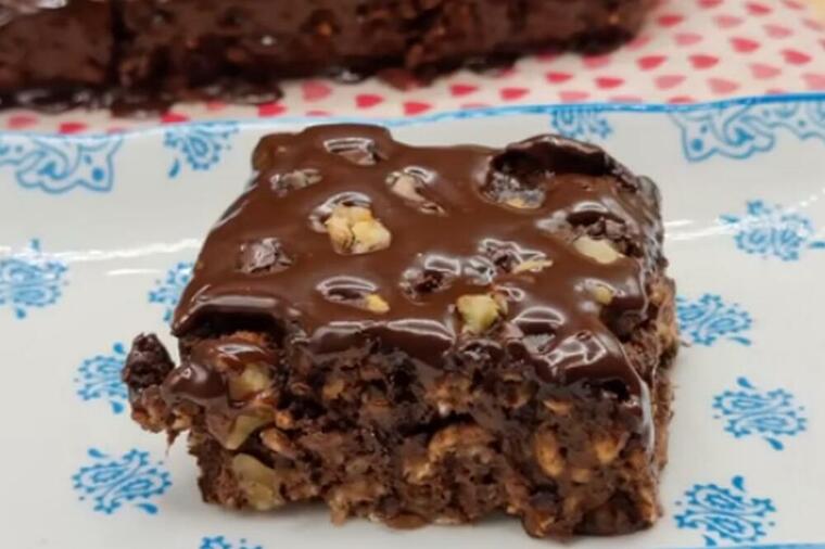 Pomiješajte zobene pahuljice natopljene mlijekom, pazeći da su sve zobene pahuljice obložene. Smjesu prebacite u tepsiju koju ste namastili ili obložili papirom za pečenje. Pospite vrh s velikom količinom nasjeckanih oraha i čokoladnih mrvica ili bilo kojim drugim usporedivim sastojkom poput ribane čokolade. Pecite u prethodno zagrijanoj pećnici na 180 stupnjeva otprilike 15-20 minuta.