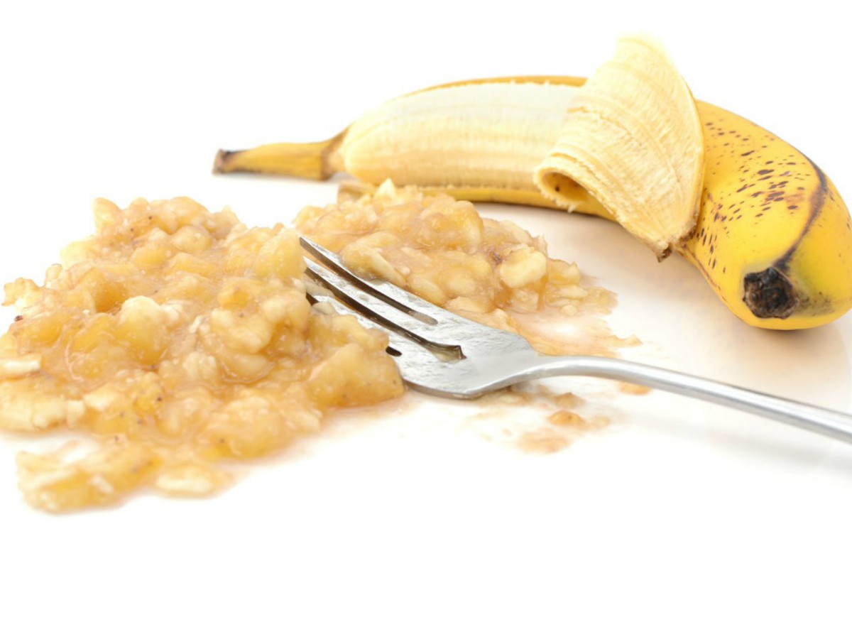 riprema:Za početak uklonite koru s banana i nastavite ih zgnječiti vilicom ili žlicom. Preporučljivo je koristiti drvenu lopaticu jer metalna može uzrokovati potamnjenje smjese.