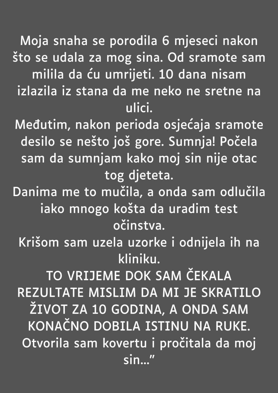 Šest mjeseci nakon udaje za mog sina, moja snaha je rodila.