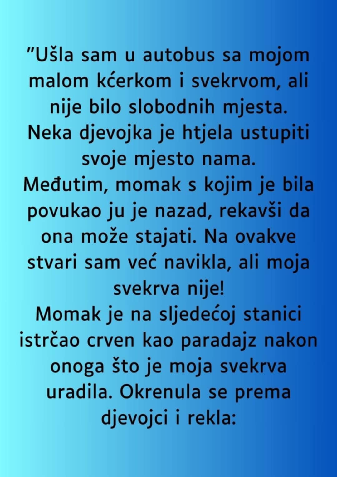 Kad sam se s malom kćeri i svekrvom ukrcao u autobus, otkrio sam da nema slobodnih mjesta.