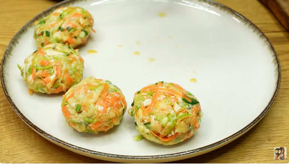 Za pripremu ovog jela počnite tako što ćete naribati jednu tikvicu, jednu mrkvu i dva krumpira. Mladi luk sitno nasjeckajte i naribajte 100 grama (3,5 oz) sira. U posebnoj posudi umutite tri jaja i umiješajte četiri žlice griza. Dodajte sol i crni papar po želji. Na kraju upotrijebite biljno ulje za prženje sastojaka.
