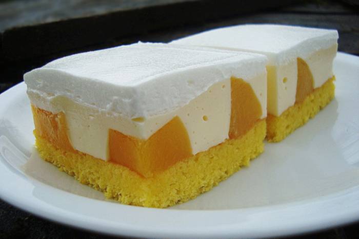 Da biste napravili slatku poslasticu, pokapajte sok od kompota na topli biskvit i nadjenite ga breskvama ili marelicama, prepolovljenima ili na četvrtinama. Za kremu pripremite puding sa 10 kašika šećera, pa u 3 dela kisele pavlake dodajte dok je još vruće. Smjesu dobro izmiksati i odmah preliti preko biskvita. Nakon što se ohladi, obilato premažite 200 ml svježe tučenog slatkog vrhnja.