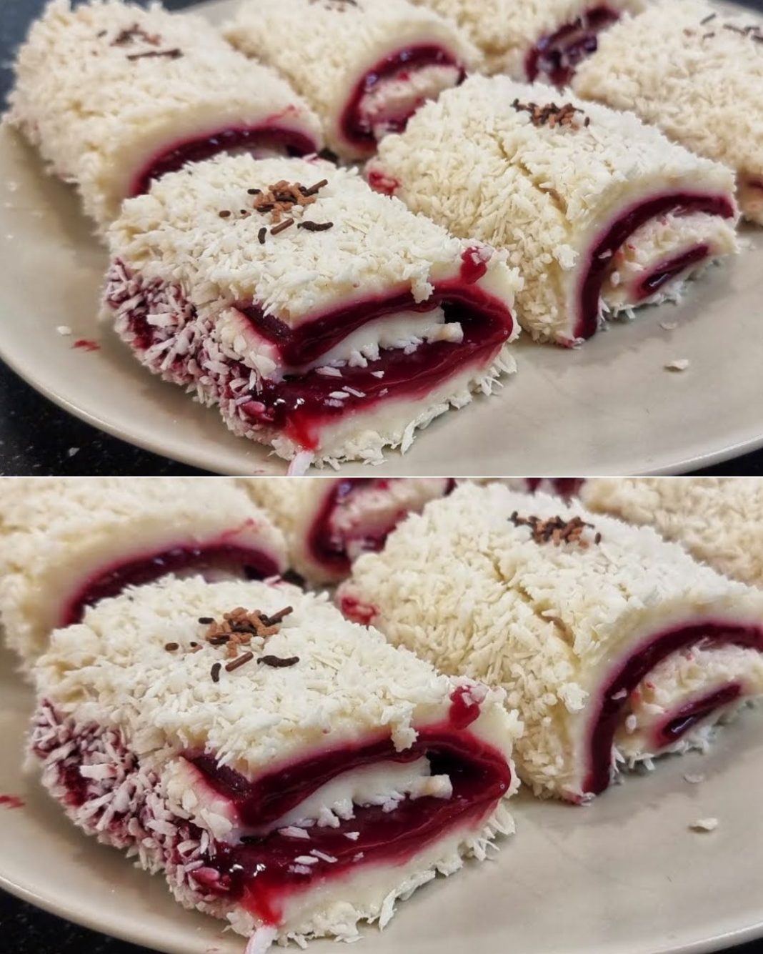 Nakon što ste u potpunosti sastavili roladu, uzmite oštar nož i narežite je na male komade veličine zalogaja. Svaki će komad imati atraktivan vrtlog nadjeva od kokosa i višanja, što ga čini ne samo ukusnim, već i vizualno privlačnim.