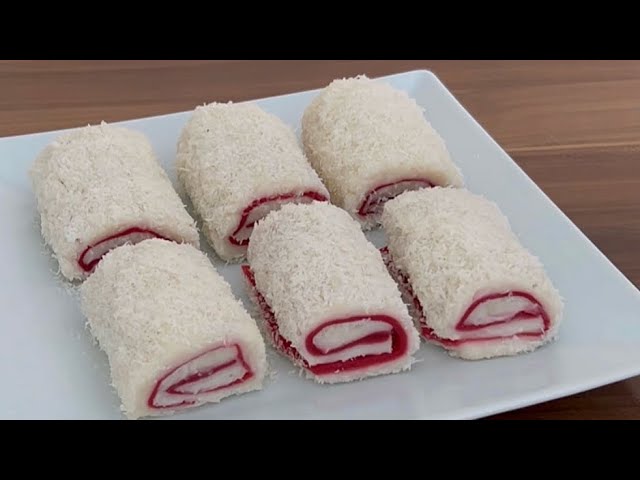 Nakon što se kokosova podloga ohladila u hladnjaku, a umak od višanja ohladio, možete krenuti sa slaganjem rolica.