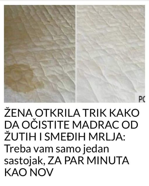 Na Facebooku je Australac prikazao nevjerojatnu transformaciju madraca kroz niz slika prije i poslije. Madrac je bio pokvaren ružnim žutim i smeđim mrljama, no ona ih je sve uspješno uklonila koristeći nekonvencionalno, ali vrlo učinkovito sredstvo za čišćenje.
